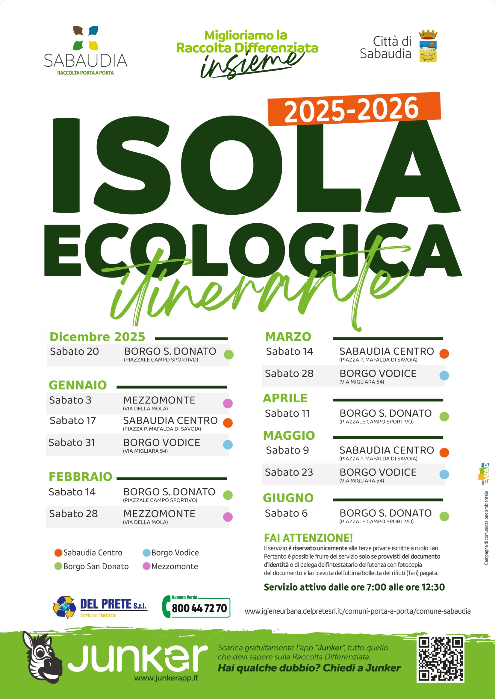 Comune di Sabaudia - ISOLA ECOLOGICA ITINERANTE INVERNO 2025-2026